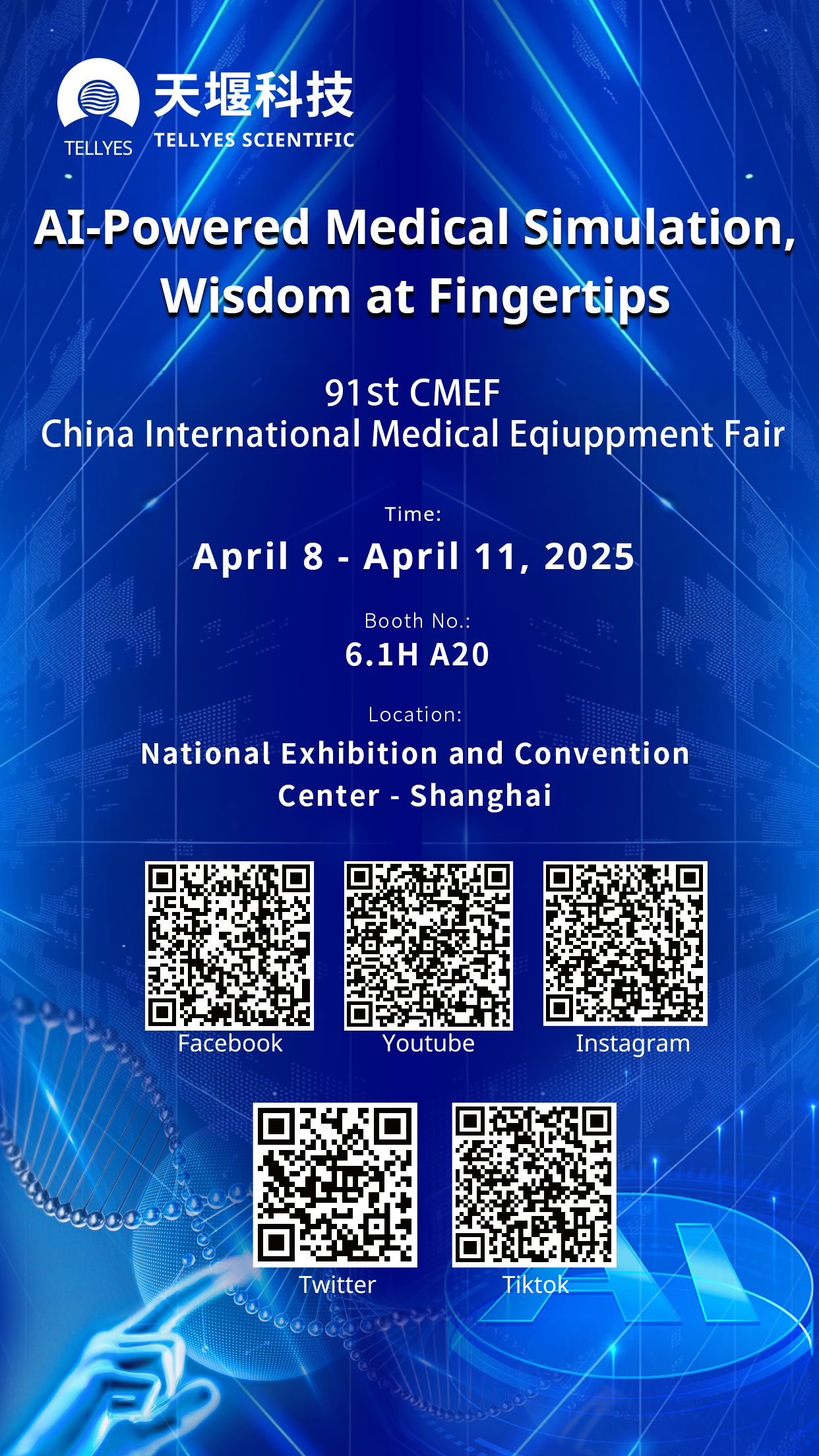 In CMEF, Tellyes will greatly integrate AI and medical education together and set up five themed zones, together with AI to create authentic medical scenarios for everyone.