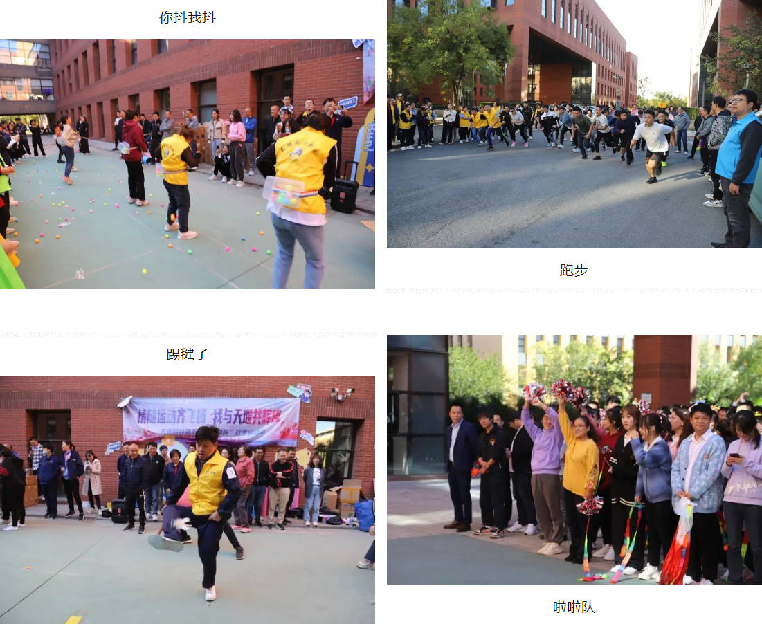 本次运动会共有300余名员工积极参与,根据所属体系划分为四只参赛代表队,分别为代表研发体系的“创新”一队、生产体系的“争先”二队、支持体系的“超越”三队以及销售体系的“巅峰”四队。运动会共设置12项比赛项目,其中包括6项个人项目及6项团体项目,6项个人项目分别为跳绳、仰卧起坐、踢毽子、跑步、你抖我抖、手忙脚乱,团体项目分别为啦啦队比赛、拔河、俄罗斯方块、同心击鼓、快乐铅笔、不倒森林,均以传统项目及趣味项目相结合的方式进行,首先进行的项目为团体项目啦啦队比赛,比赛现场气氛热烈,趣味横生。